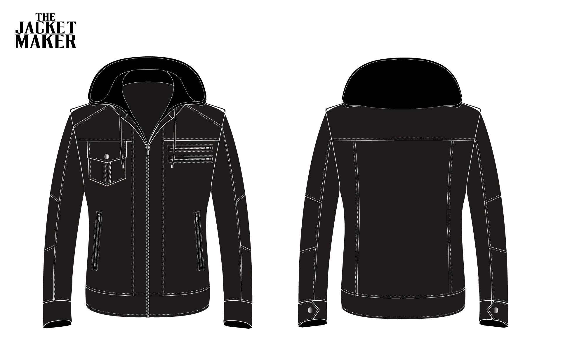 The Bravado Black Hooded Leather Bomber Jacket with the following changes: