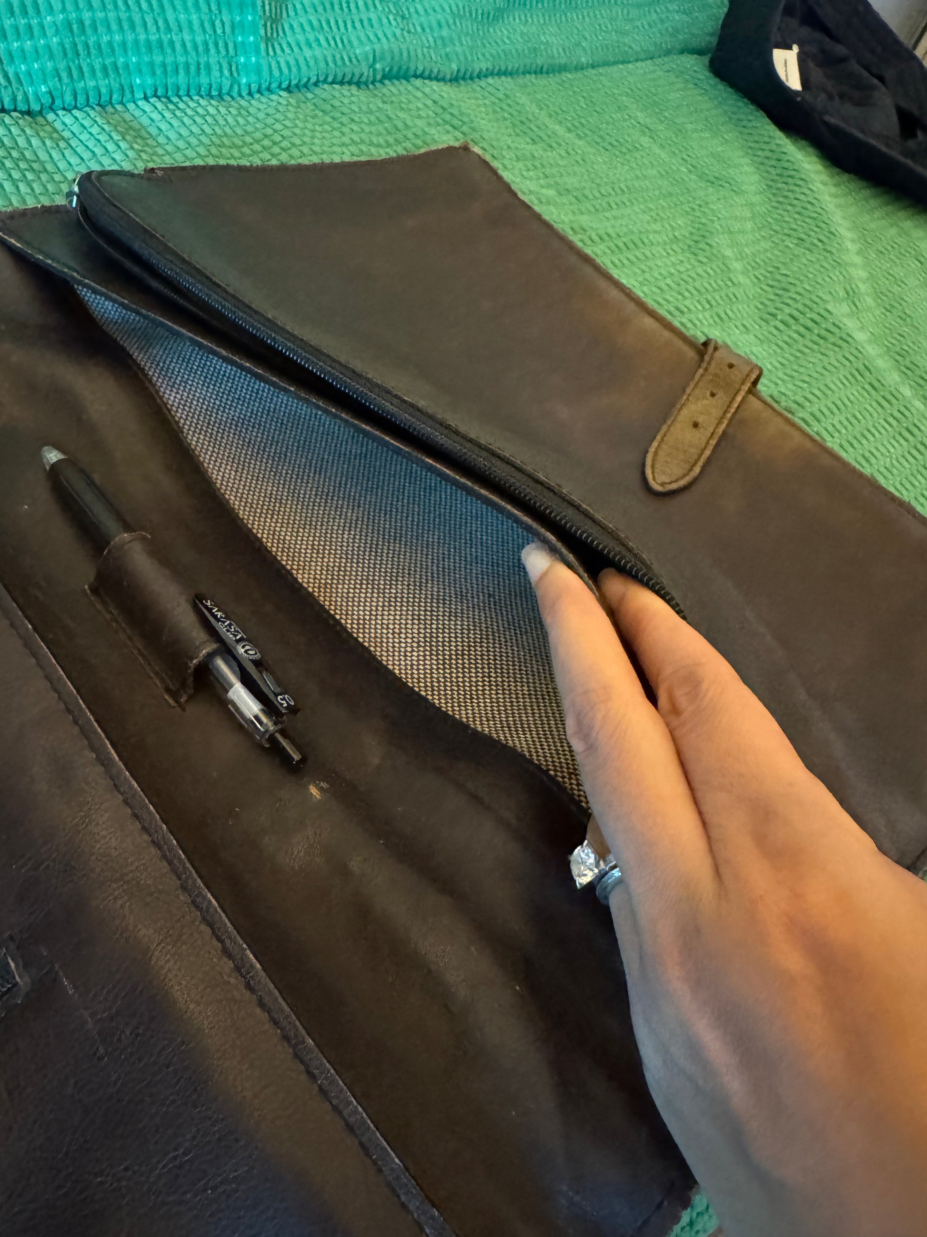 • Inside Pockets: 1 zipper compartment, 2 slip-in compartments, 2 zipper pockets, 1 pen loop