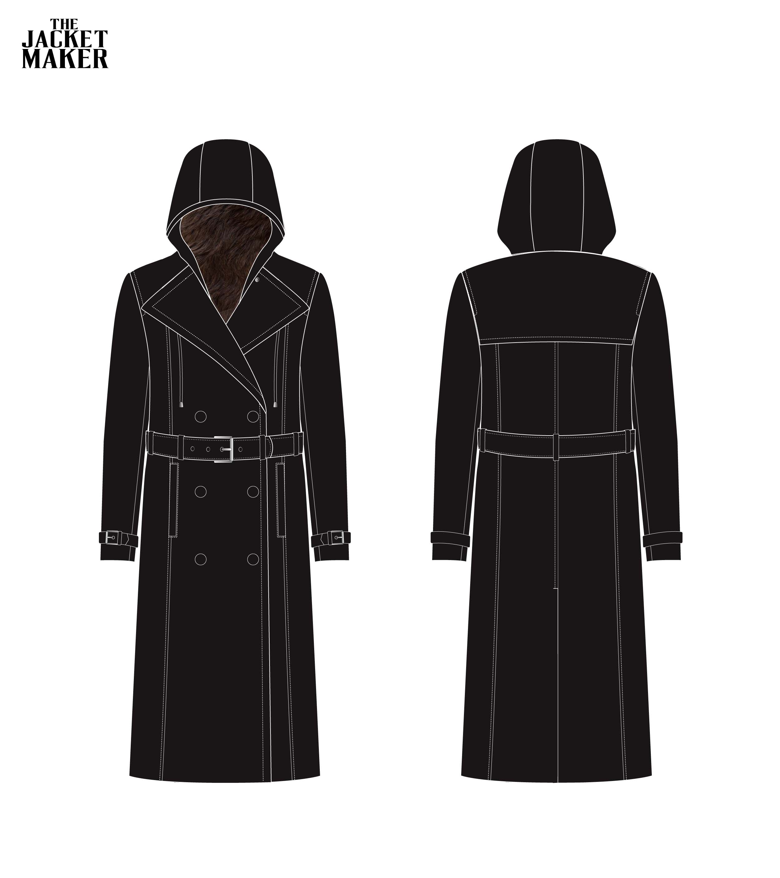 • The Fixon Hooded Black Trench Coat with the customizations you’ve outlined: