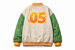 • Cuffs Style: Fabric rib knit (orange and white) (left cuff with orange rib knit)