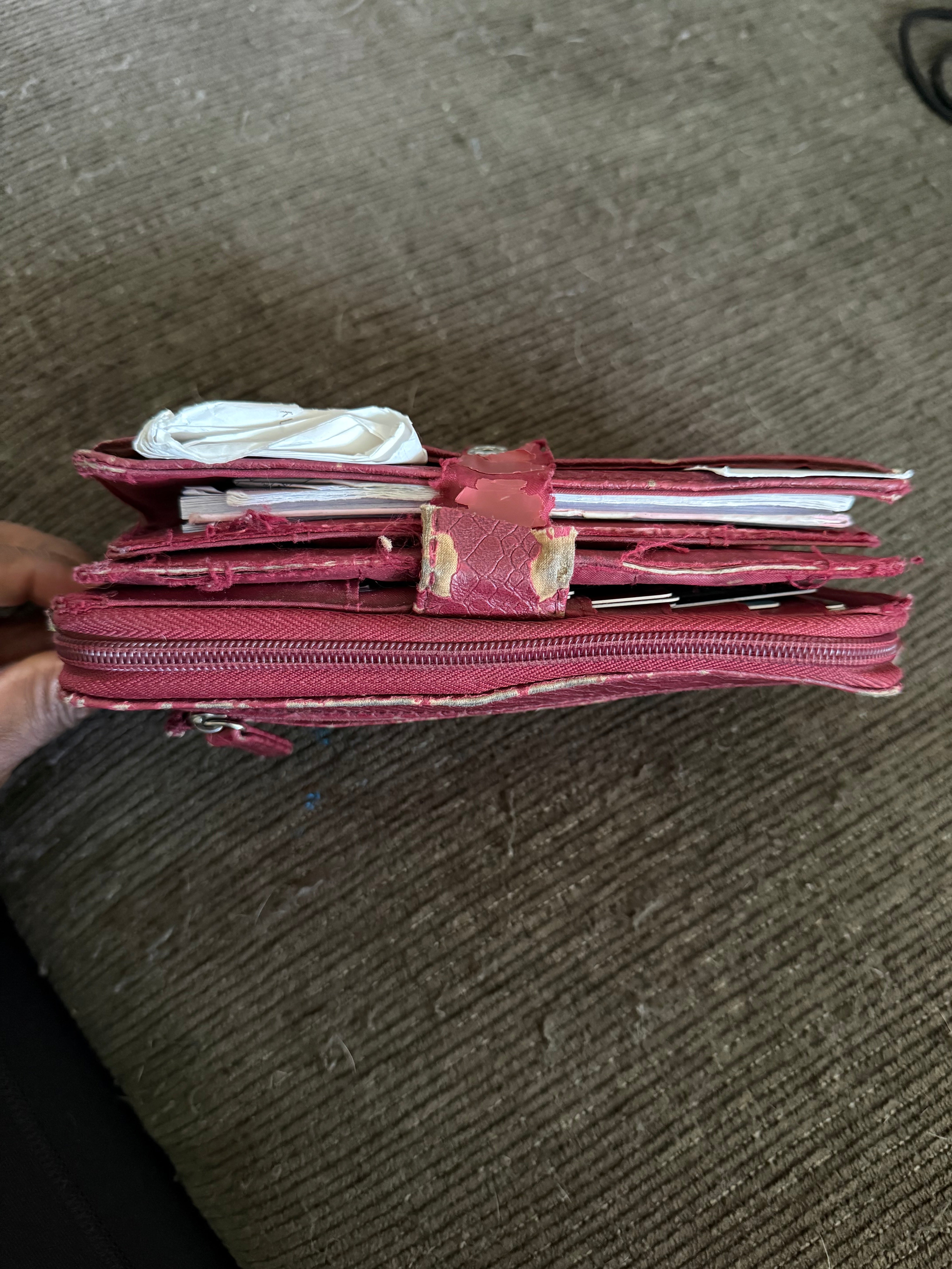 • Dual-section layout: one for cards, photos, and IDs, and the other for a checkbook and additional storage. (as per mock & references)