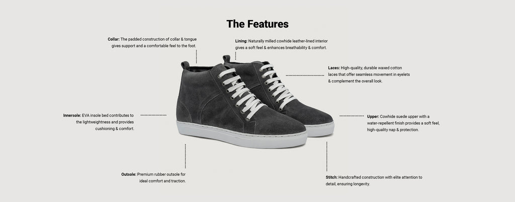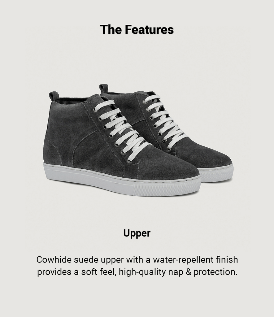 - Suede Cowhide Leather Upper (Durable Water Repellent Finish)