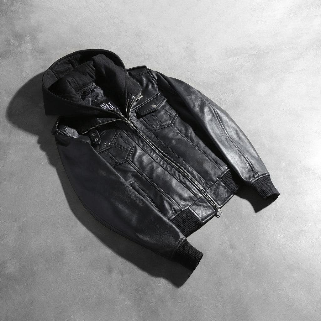 Roslyn Black Hooded Leather Bomber Jacket