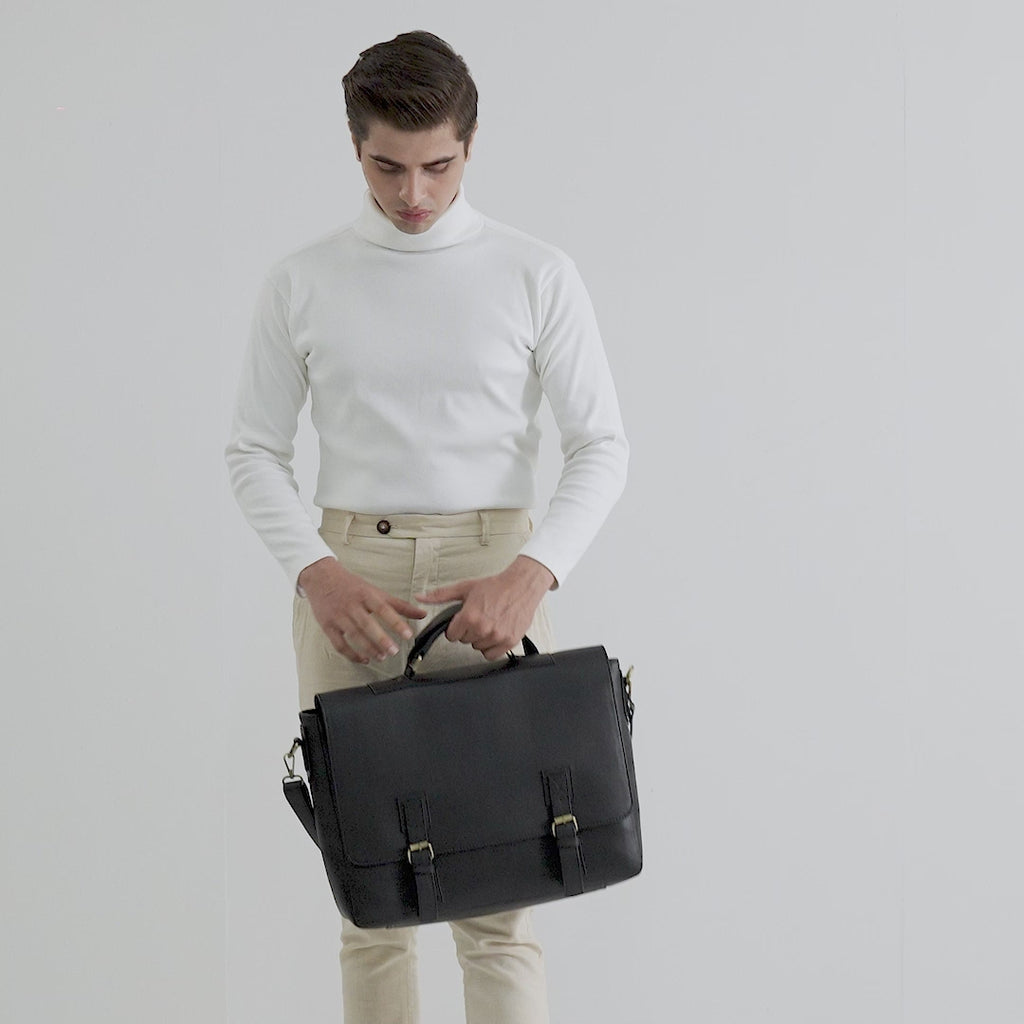 The Cristoph Black Leather Messenger Bag