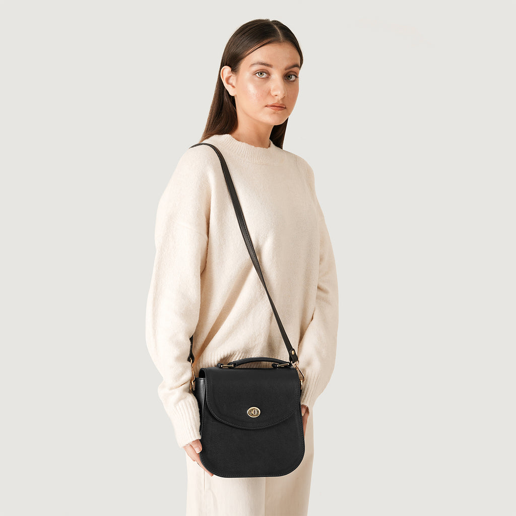 The Sandra Black Leather Saddle Bag